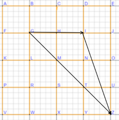 Aby rozwiązać to zadanie, zaznacz podane wektory na rysunku obok. Jeżeli dane wektory nie mają wspólnego początku lub nie stykają się końcem i zwrotem wektora, należy wybrać wektory identyczne do wektorów podanych w zadaniu. Dzięki temu łatwiej będzie graficznie dodać do siebie dane wektory. Należy zwrócić szczególną uwagę na zwrot wektora. Odpowiedź jest przykładowa, ale odpowiadał będzie każdy wektor posiadający taką samą wartość, kierunek i zwrot.
