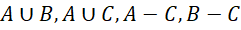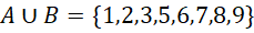 oznacza sumę zbiorów, czyli elementy należące do przynajmniej jednego z podanych, a