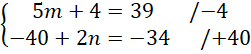 w każdym równaniu w układzie równań podstaw liczby podane w treści zadania i wyznacz rozwiązania powstałych równań, czyli wartości liczb