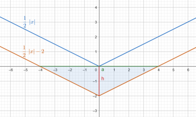 . Zauważ, że aby powstał trójkąt o polu 8, należy każdy punkt znajdujący się na wykresie narysowanej funkcji przesunąć o 2 jednostki w dół. Na tej podstawie zapisz wartość współczynnika