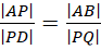 Stosunek długości przekątnych w obu trapezach jest taki sam, więc trapezy ABQP i PQCD są podobne.