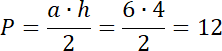 Odczytaj długość wysokości oraz podstawy na którą opada w powstałym trójkącie i oblicz jego pole.