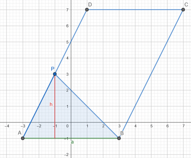 Oblicz pole trójkąta ABP, jeśli punkt P jest punktem przecięcia prostej AD przedstawionej na rysunku z prostą