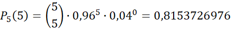 Wyznacz prawdopodobieństwo tego, że za każdym razem wylosujemy piłkę jakościowo dobrą, jeśli w pewnej partii piłek 4% piłek jest wadliwych. Losujemy pięć razy ze zwracaniem jedną piłkę i badamy jej jakość.