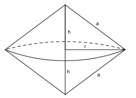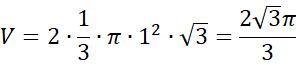 Na koniec oblicz objętość powstałej bryły, czyli dwóch stożków, gdy objętość każdego z nich można obliczyć ze wzoru
