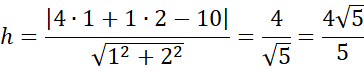 Podaną prostą przedstaw w postaci ogólnej. Ze wzoru na odległość punktu od prostej wyznacz długość wysokości równoległoboku i ze wzoru na długość odcinka oblicz długość podstawy AB. Na koniec oblicz pole równoległoboku ABCD.