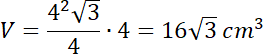 Wyznacz objętość graniastosłupa prawidłowego trójkątnego, którego wszystkie krawędzie mają długość 4 cm.