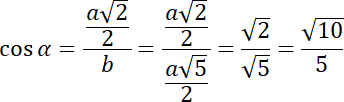 Z funkcji cosinus w podanym trójkącie prostokątnym wyznacz długość wysokości ściany bocznej. Następnie skorzystaj z twierdzenia Pitagorasa w trójkącie będącym połową ściany bocznej i wyznacz długość krawędzi bocznej. Na koniec oblicz cosinus podanego kąta w tym trójkącie i skorzystaj z jedynki trygonometrycznej, aby obliczyć jego sinus.