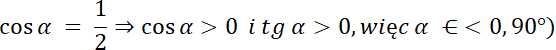 W tym zadaniu na podstawie znaku funkcji tangens oraz wartości cosinusa kąta α określ, do której ćwiartki układu współrzędnych należy szukany kąt, a następnie wyznaczyć dokładna wartość α.