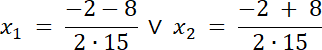 ∆ = (2)2–4∙15∙(–1)