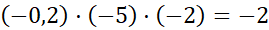 Pamiętaj, iloczyn nieparzystej ilości liczb ujemnych jest liczbą ujemną, a iloczyn parzystej ilości liczb ujemnych – liczbą dodatnią. Pomnóż liczby (–5) i (–2) – otrzymasz liczbę 10. Następnie pomnóż przez 10 liczbę (–0,2), czyli przesuń przecinek o jedno miejsce w prawo.