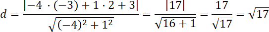 . Odległość punktu P(x0, y0) od prostej l o równaniu ogólnym: Ax + By + C = 0 wyraża się za pomocą wzoru: