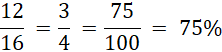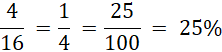 Zamalowano 4 trójkąty, jest to 25% całej figury. Nie zamalowano 75% całej figury.