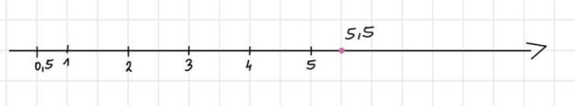 Narysuj oś, przyjmij jako jedną kratkę 0,5 i zaznacz punkt 5,5.