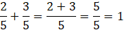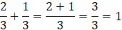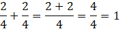 Ułamki o jednakowych mianownikach dodaj, sumując liczniki oraz przepisując mianownik. W każdym przypadku licznik i mianownik są jednakowe, więc wynik wynosi 1.