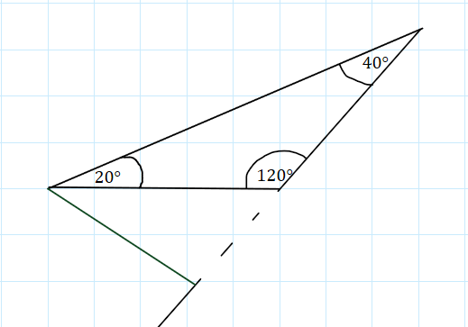 Kąty wewnętrze tego trójkąta są równe: 180˚ - 160˚ = 20˚, 180˚ - 60˚ = 120˚, 180˚ - 120˚ - 20˚ = 40˚.
