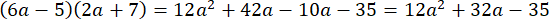 W tym zadaniu przedstaw pole prostokąta o bokach długości 6a – 5 i 2a + 7 w postaci sumy algebraicznej.