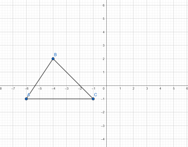 Na początek zaznacz wierzchołki w układzie współrzędnych. Następnie połącz te punkty w figurę. Aby obliczyć pole tego trójkąta, musisz znać a oraz h. Policz te wielkości po kratkach i wstaw do wzoru. Następnie, aby obliczyć obwód, policz odcinek AC z twierdzenia Pitagorasa.