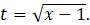 Określ dziedzinę równania, uwzględniając, że nie można pierwiastkować pierwiastkiem stopnia parzystego liczb ujemnych. Następnie przekształć lewą stronę równoważnie, odejmując i dodając 1. Wykonaj podstawienie