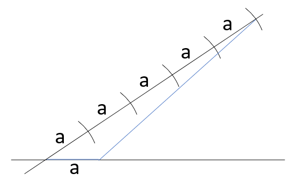 Wykreśl prostą łączącą ostatni z punktów wyznaczonych w punkcie 3. punktów z końcem odcinka o długości a różnym od punktu przecięcia prostych.