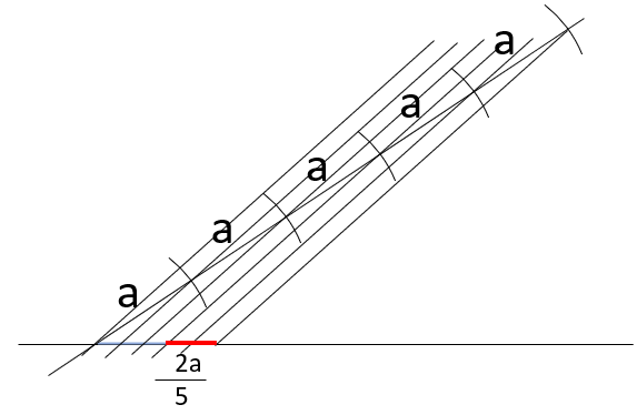 Punkty przecięcia prostych z odcinkiem dzielą go na pięć równych części, stąd każdy z otrzymanych odcinków ma długość