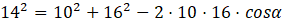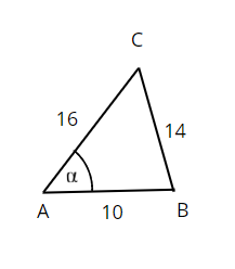 Korzystając z twierdzenia cosinusów, wyznacz wartość cosinusa, a na jego podstawię miarę kąta.