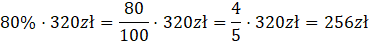 Oblicz cenę ubrania po obniżce, jeśli obniżono ją o 20% z kwoty 320 zł.