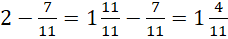 Aby wykonać takie odejmowanie, musisz zapisać liczbę całkowitą w postaci ułamka o tym samym mianowniku. Odejmowanie ułamków o jednakowym mianowniku wykonujemy, odejmując od siebie liczniki i przepisując mianownik