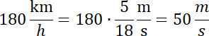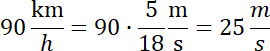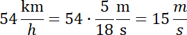 W tym zadaniu musisz przekształcić prędkości w km/h na prędkości w m/s.