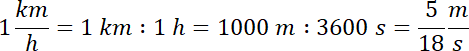 Na początku oblicz 1 km/h na odpowiadającą mu prędkość w m/s wykorzystując przekształcony kilometr i godzinę. Pomnóż prędkości w km/h przez wynik.