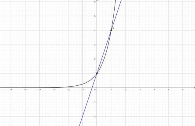 przyjmuje wartości większe niż funkcja