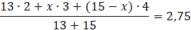 . Znając średnią arytmetyczną, ułóż równanie: