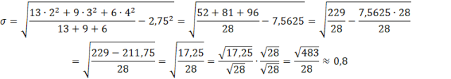 Odchylenie standardowe to pierwiastek kwadratowy z wariancji, czyli: