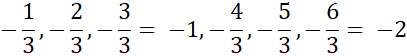 Kolejne liczby wymierne, ujemne, które można przedstawić w postaci ułamka o całkowitym liczniku i mianowniku równym 3:
