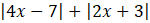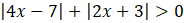 jest zawsze nieujemna, ponieważ jest sumą wyrażeń ze znakiem wartości bezwzględnej. Możemy podejrzewać, że istnieje taki x, dla którego lewa strona tej nierówności będzie równa 0, dlatego upewnijmy się, że nie ma takiego x, dla którego oba wyrażenia z wartością bezwzględną będą równe 0 jednocześnie: