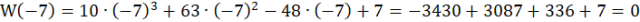 Zatem liczba -7 jest pierwiastkiem danego wielomianu.