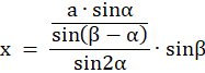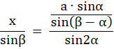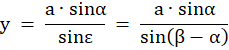 Kąt przy boku x oznaczasz jako γ, kąt naprzeciwko boku AB oznaczasz jako δ, kąt po lewej odcinka y wychodzącego z wierzchołka kąta γ oznaczasz przez ε. Korzystając z twierdzenia sinusów, wyznaczasz długość odcinka x.