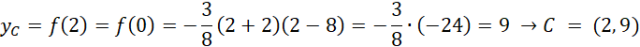 Wierzchołek C trójkąta jest jednocześnie wierzchołkiem paraboli funkcji, więc: