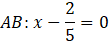 W pierwszej kolejności musisz się upewnić, czy równanie prostej AB da się zapisać w postaci kierunkowej. Zauważ, że 0,4 to tyle samo co