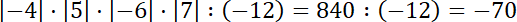 Wykonaj mnożenie wartości bezwzględnych liczb podanych w zadaniu i podziel wynik przez liczbę przeciwną do liczby 12.