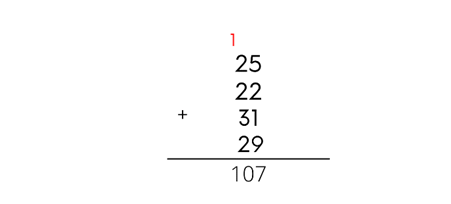 Zapisujemy wyniki dodawania kolumnami. Wynik dodawania jedności pod jednościami, dziesiątki pod dziesiątkami i tak wszystkie liczby. Gdy pojawia się suma większa od 9, to liczbę dziesiątek przepisujemy nad nasze liczby i dodajemy w kolejnym dodawaniu.