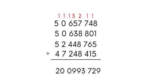 Zapisujemy wyniki dodawania kolumnami. Wynik dodawania jedności pod jednościami, dziesiątki pod dziesiątkami i tak wszystkie liczby. Gdy pojawia się suma większa od 9, to liczbę dziesiątek przepisujemy nad nasze liczby i dodajemy w kolejnym dodawaniu.