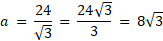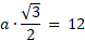 Skorzystaj z faktu, że przekątne równoległoboku dzielą go na cztery równe trójkąty, więc każdy z trójkątów ADE, DEC, CEB i AEB ma pole 6. Przyrównaj pole jednego z trójkątów do 6 i oblicz długość przekątnej a.