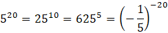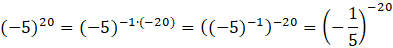 (-5)20 =(-5)4 ∙ 5 = ((-5)4)5 = 6255