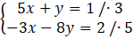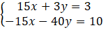 15x + 3y – 15x – 40y = 3 + 10
