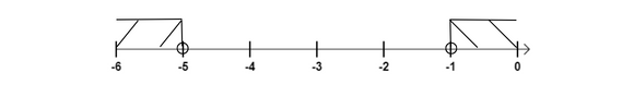 Narysuj oś liczbową i zaznacz na niej zbiór liczb mniejszych od -5 oraz większych od -1. Puste kółko oznacza, że liczba nie spełnia wskazanego warunku.