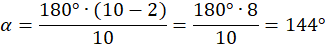 W tym zadaniu ustal, ile wynosi miara kąta wewnętrznego dziesięciokąta foremnego.