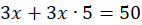 Dodaj wyżej zapisane wyrażenia do siebie, powstałą sumę przyrównaj do 50: