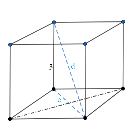 W tym zadaniu znajdź długość krótszej przekątnej graniastosłupa prostego wiedząc, że ma on wysokość 3, a jego podstawą jest romb pokazany na rysunku.