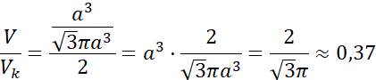 Sześcian wycięty z kuli stanowi 0,37 jej objętości.
